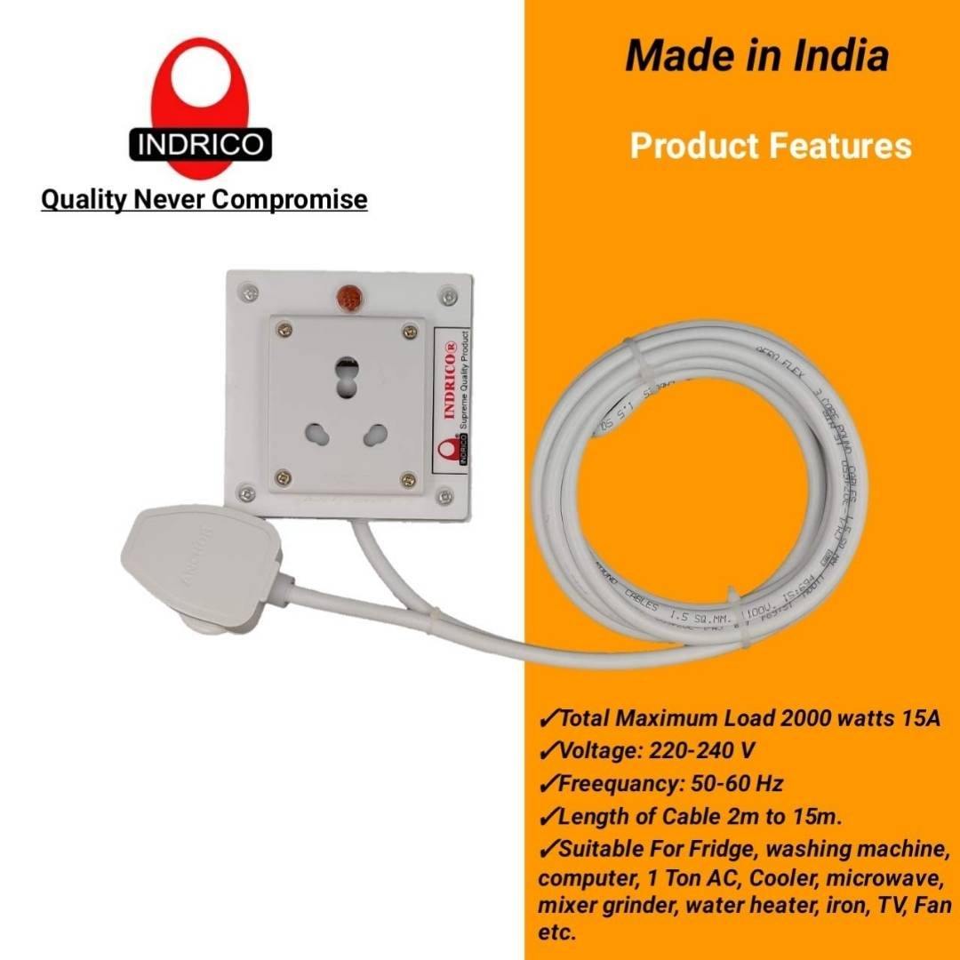 Indrico 15 Amps Extension Board With Power Indicator Wired White Indrico